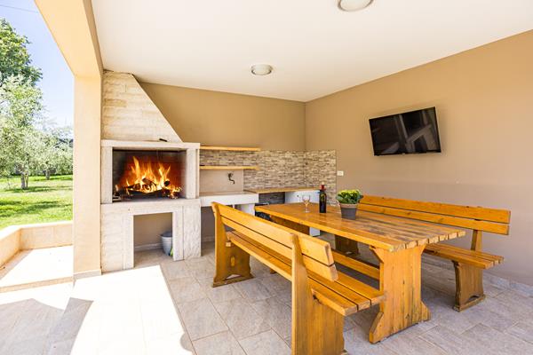 natkrivena terasa sa sjedećom garniturom, grill, TV