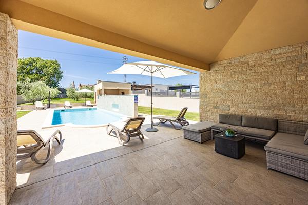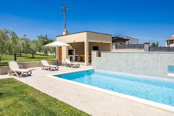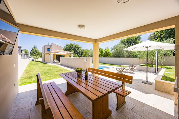 Lijepa moderna vila smještena na samom jugu istarskog poluotoka u mirnom mjestu Šišan, u blizini popularne turističke destinacije Medulin. Ograđena za privatnost i sigurnost gostiju, dobro opremljena i ukusno uređena, ova će vila ispuniti sva vaša očekivanja. Privatni bazen, natkrivena terasa i grill će vam omogućiti puno vremena na otvorenom prostoru. Ugodne večeri uz ukusni roštilj su omiljeni završetak dugog ljetnog dana. Kućni ljubimci su dobrodošli uz nadoplatu. Natkriveni parking i wi-fi su besplatni.