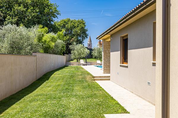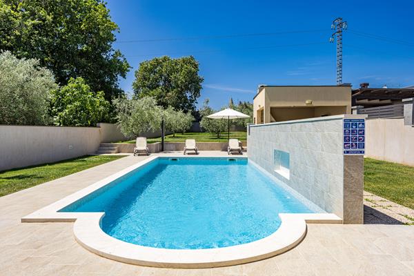 lijepo održavani vrt sa stablima maslina, bazen dimenzija 9x4 metra, vanjski tuš, wc uz bazen, ležaljke uz bazen, natkrivena terasa s vrtnim namještajem, roštilj