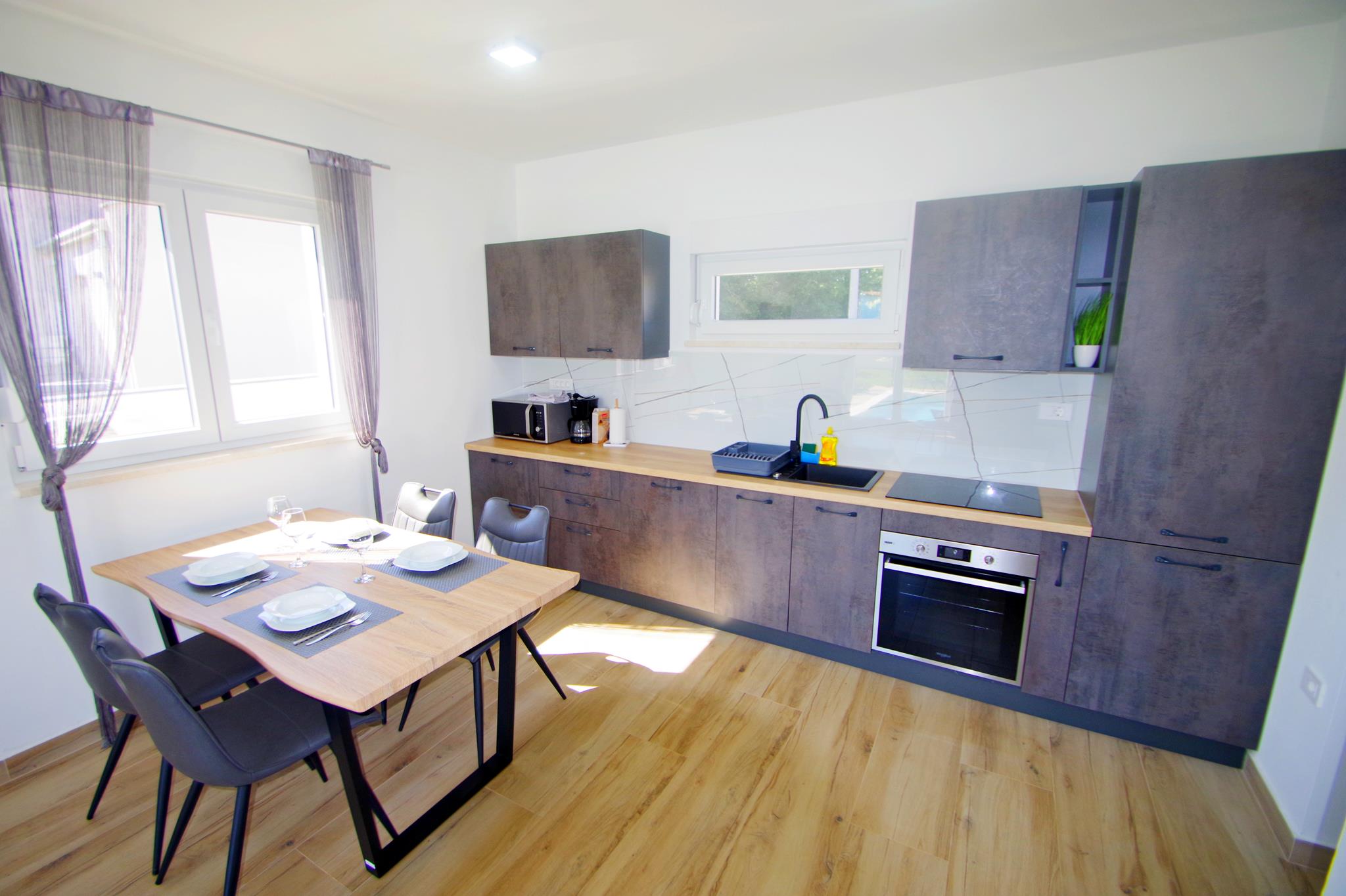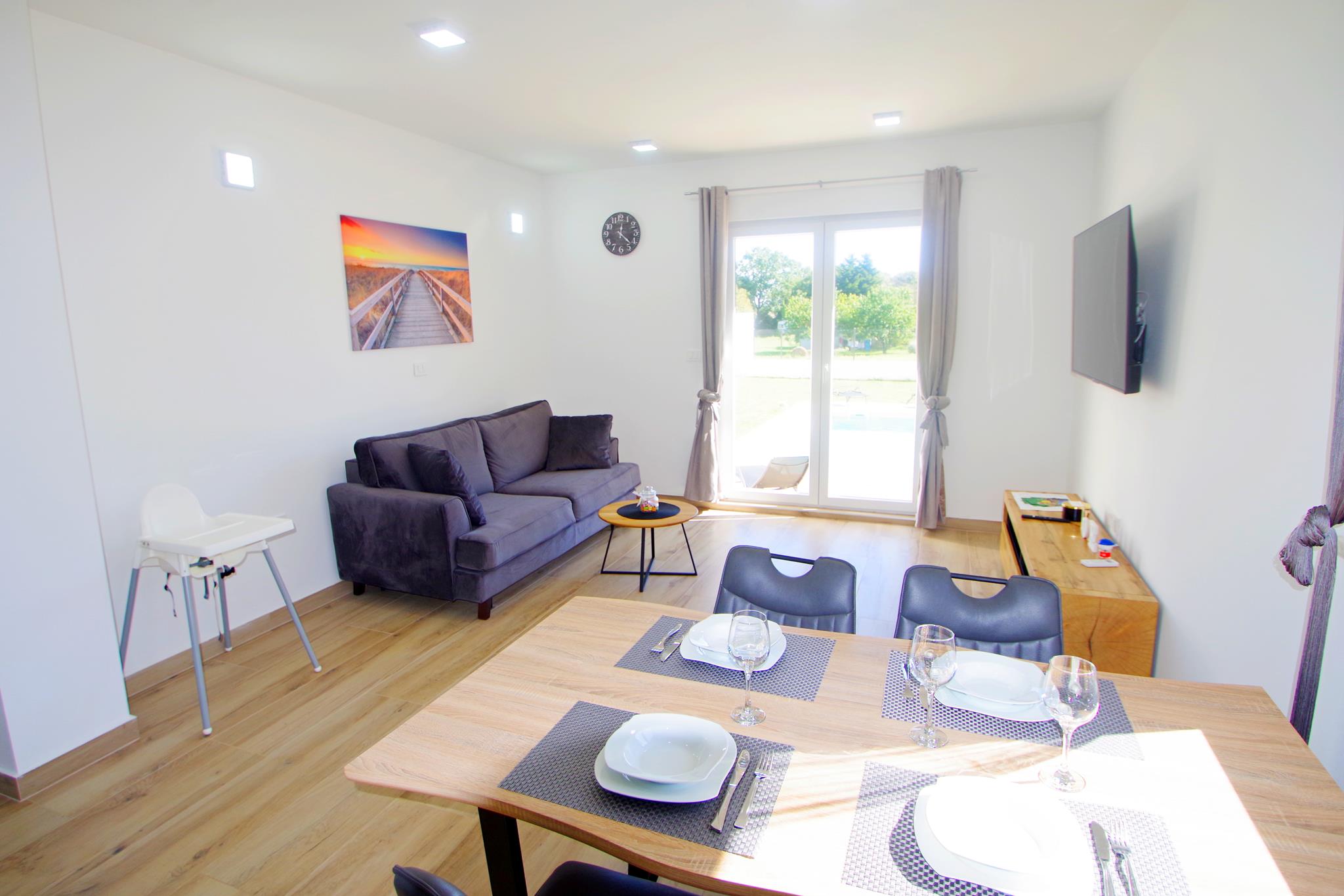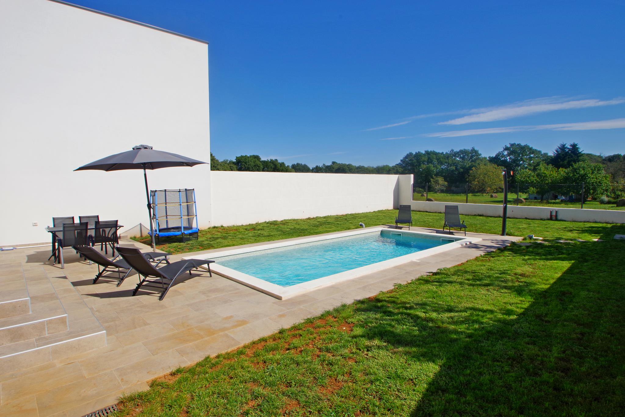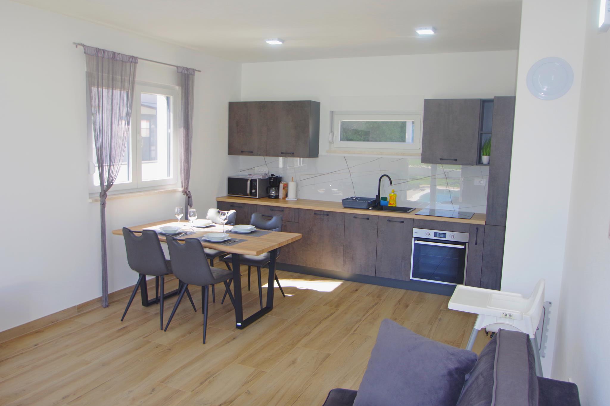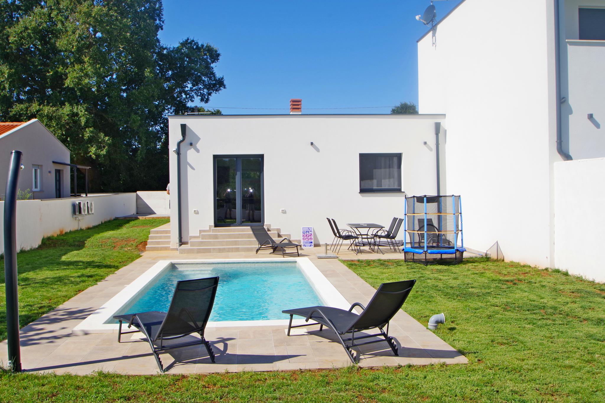 It ia brand new, pet friendly, holiday house with 1 bedroom, enclosed garden with private pool and grill. The bedroom promises a restful night's sleep, while the open-plan living area connects to a fully equipped kitchen, allowing you to whip up delightful meals at your convenience.