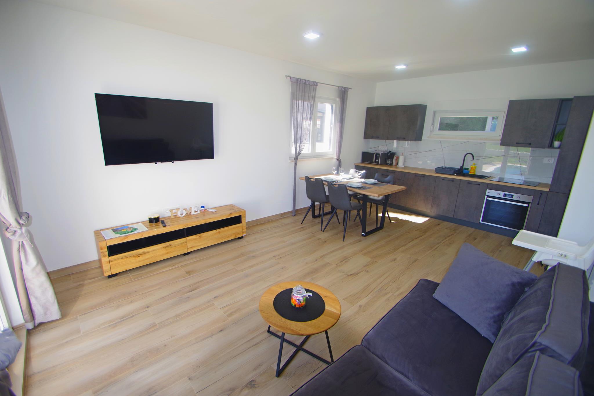 - living room with air condition, SAT - TV, sofa ( sofa bed for 2 person), dining area, exit to garden