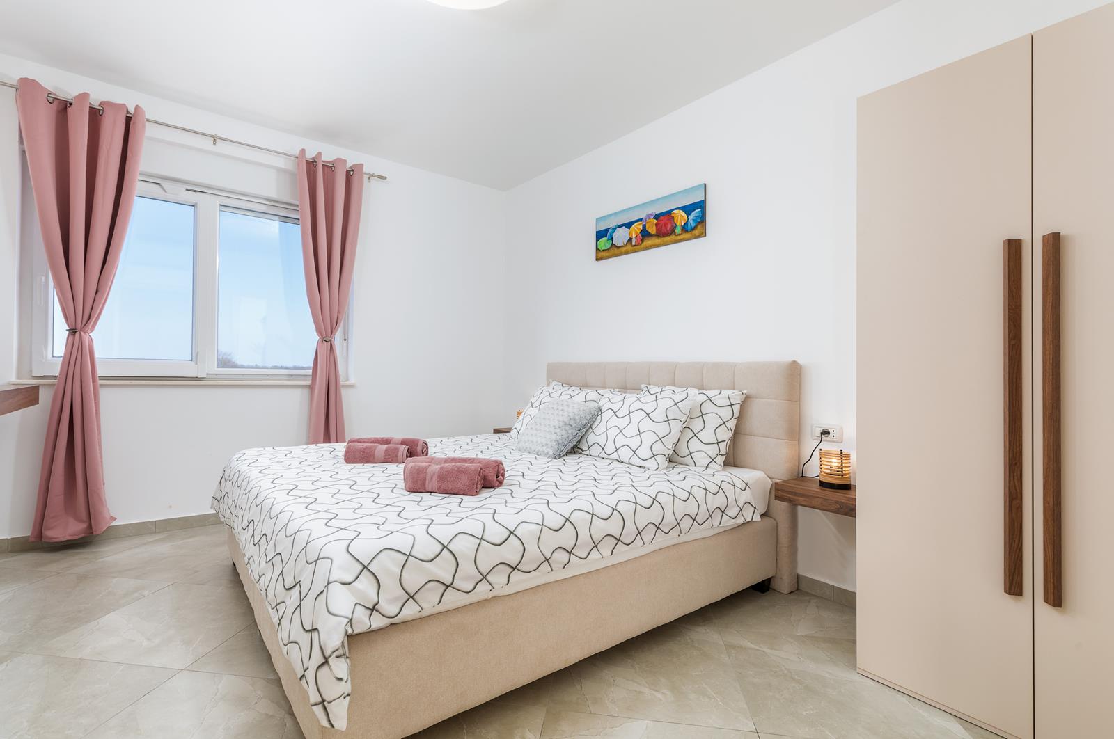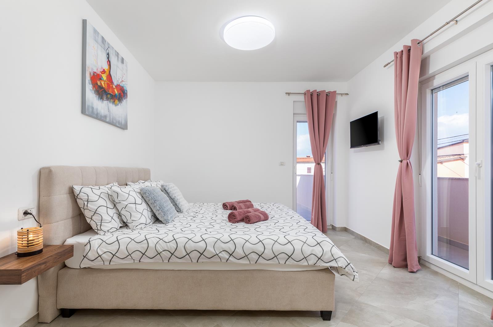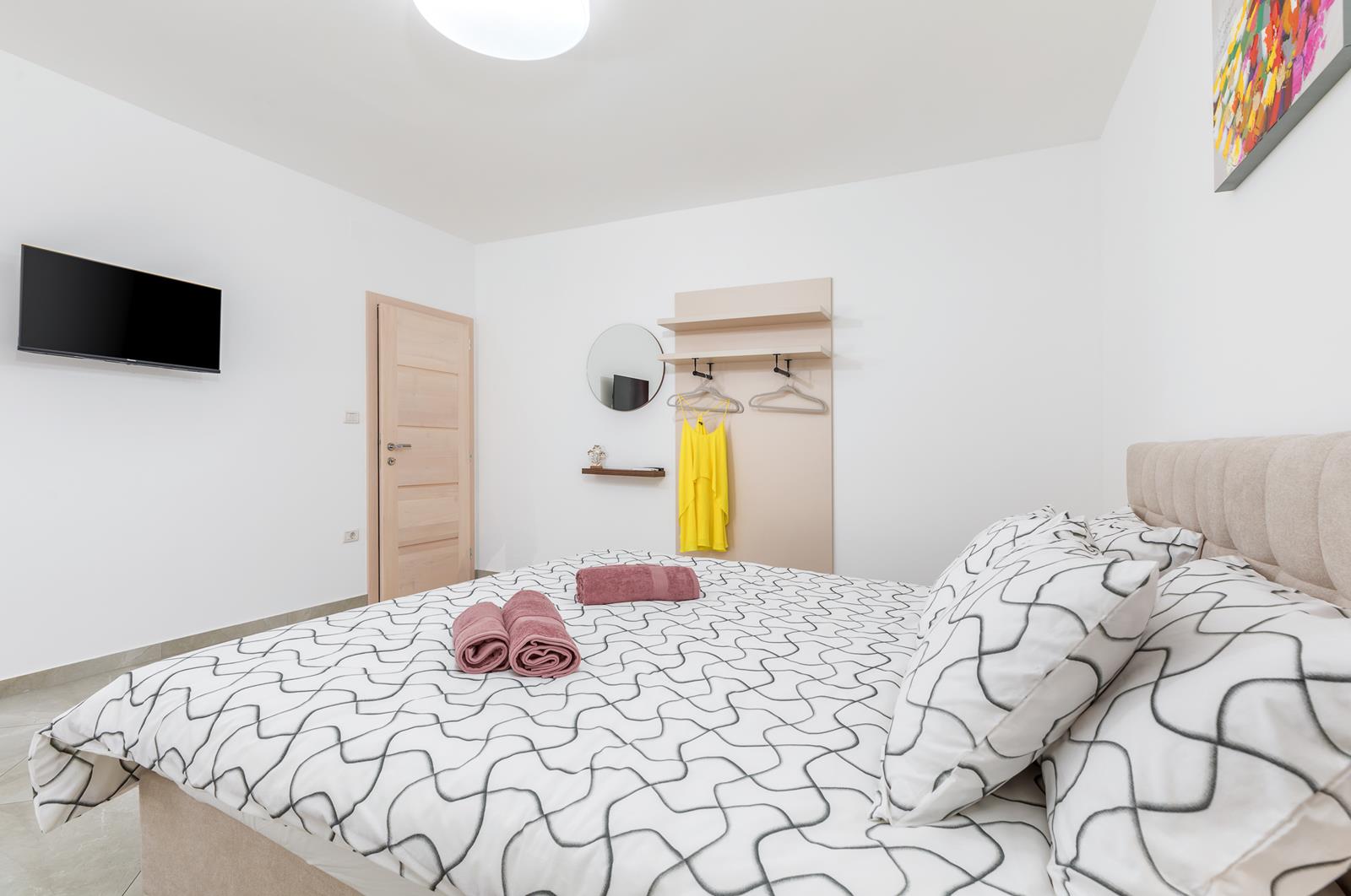 - 3 spavaće sobe s bračnim krevetom (širina 180 cm), klima, SAT TV, vlastite kupaonice (tuš, wc, sušilo za kosu)- ostava sa perilicom rublja