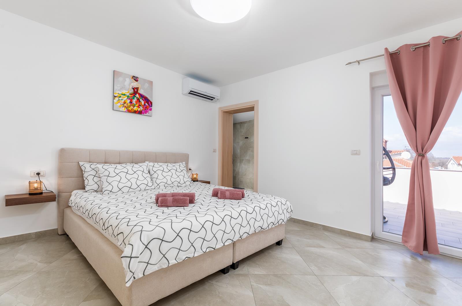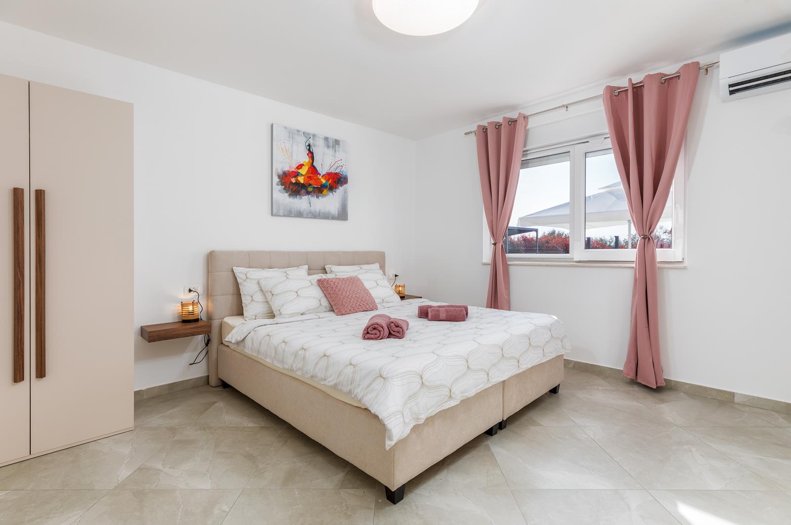 - 3 spavaće sobe s bračnim krevetom (širina 180 cm), klima, SAT TV, vlastite kupaonice (tuš, wc, sušilo za kosu)