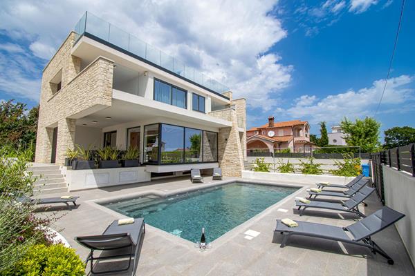 Smještena u mirnom dijelu Ližnjana, ova moderno i elegantno dizajnirana vila savršen je izbor za vaš odmor u Istri. Nudi četiri prostrane spavaće sobe, svaka s vlastitom kupaonicom, klima-uređajem i SAT TV-om, što svim gostima osigurava potpunu udobnost i privatnost.