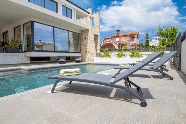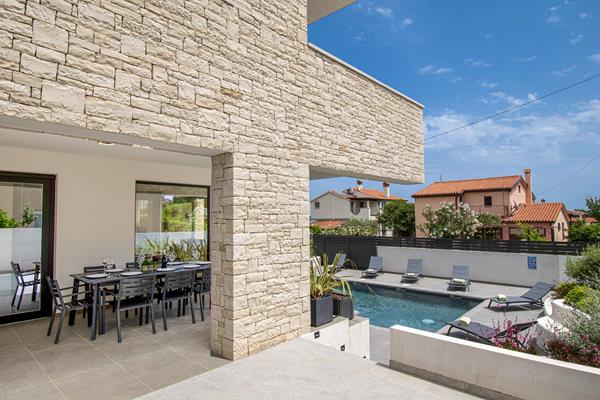 Vila raspolaže privatnim bazenom okruženim ležaljkama za opuštanje na suncu, kao i natkrivenom terasom idealnom za uživanje u hladu ili večernja druženja. Osim toga, na raspolaganju su i dva balkona s pogledom na mirno istarsko okruženje i more.