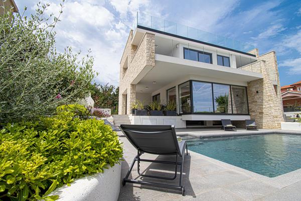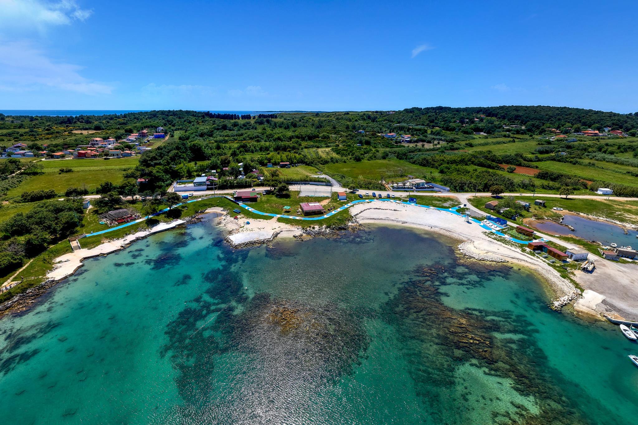 privatni bazen (8,2 m x 4,5 m, dubina 1,5 m), 8 ležaljki i 3 suncobrana, vanjski tuš