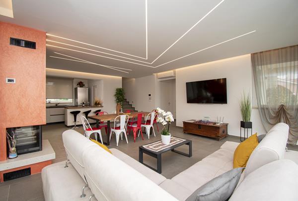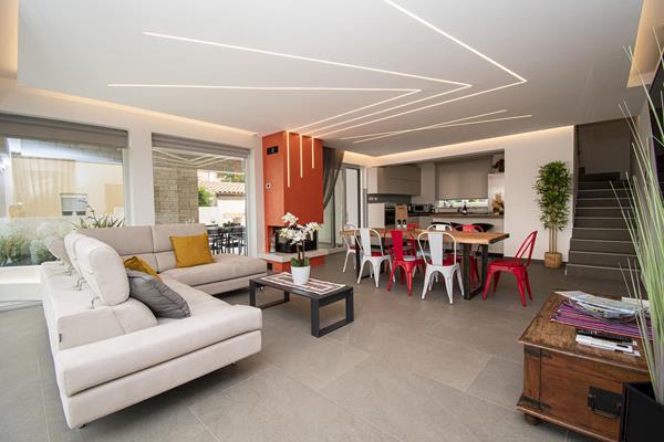 dnevni boravak s klimom, Smart SAT-TV-om, sofom, blagovaonicom, izlazom u vrt i na bazen