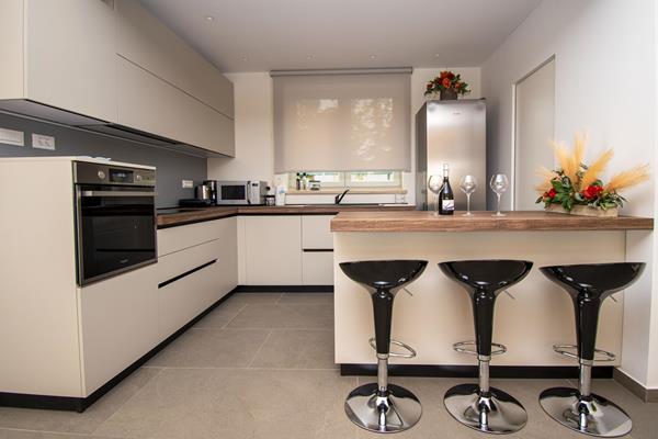 kuhinja (indukcijska ploča s 4 kola, hladnjak sa zamrzivačem, perilica posuđa, kuhalo za vodu, aparat za kavu – filter i moka, pećnica, toster, napa, pribor za kuhanje i jelo, mikrovalna pećnica)