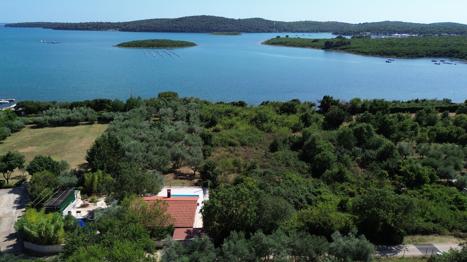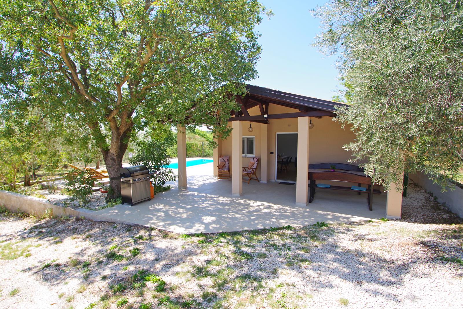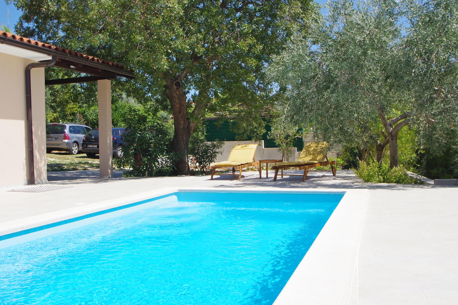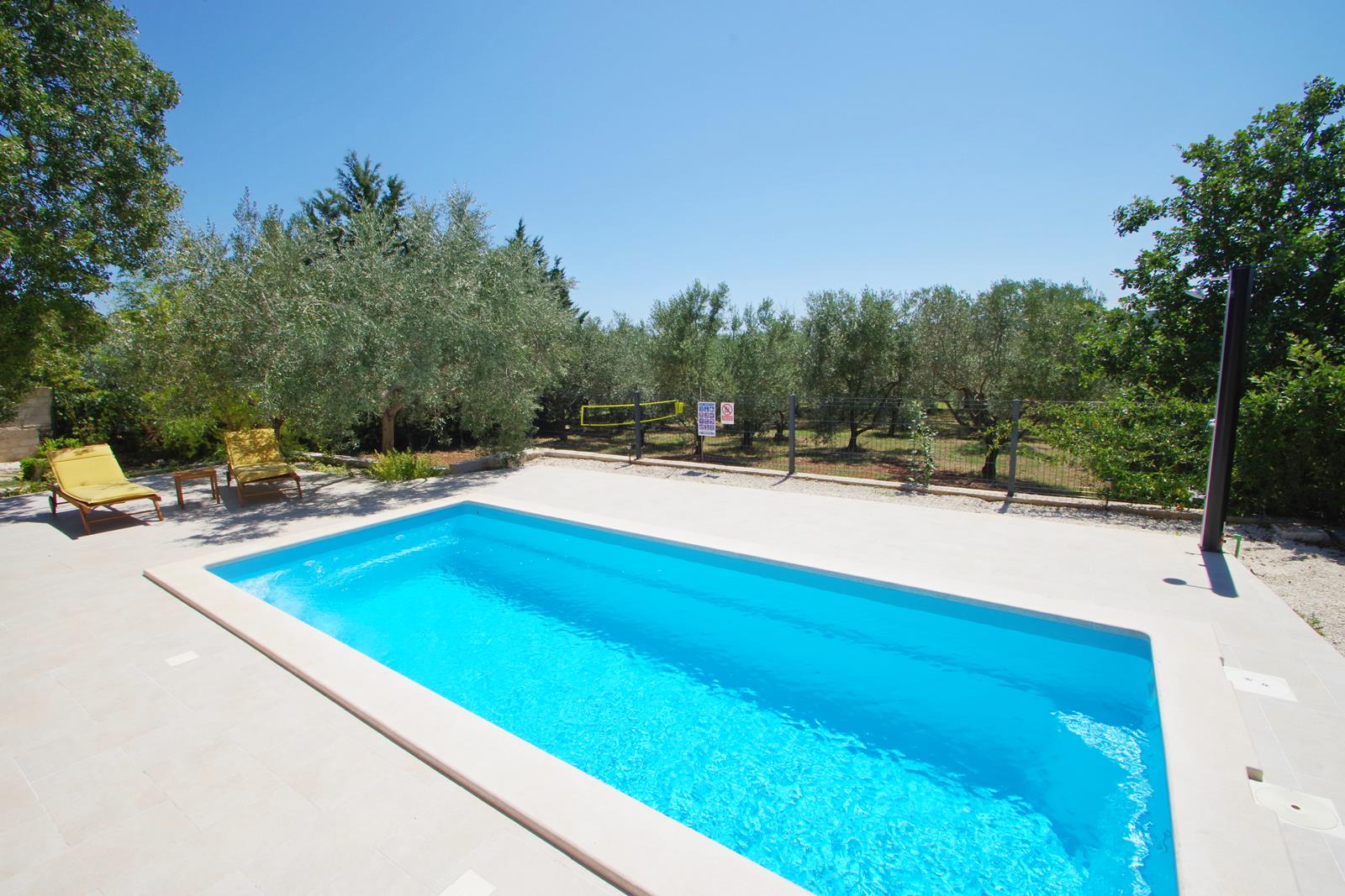 privatni bazen (6,5 m x 3 m), 2 ležaljke i 2 stolice, vanjski tuš
