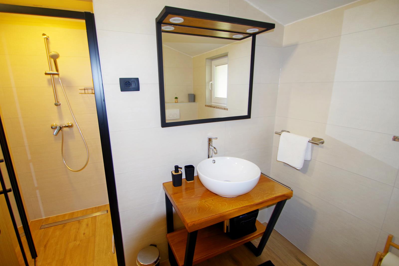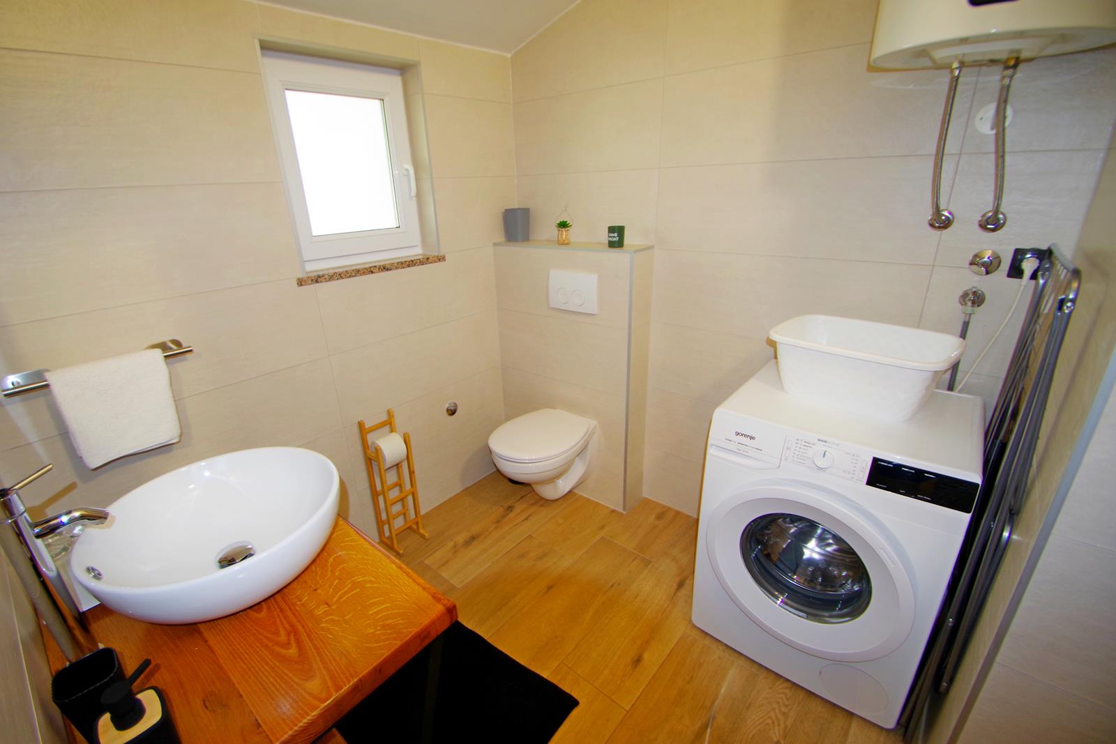 kupaonica (tuš, umivaonik, sušilo za kosu, WC, perilica rublja)