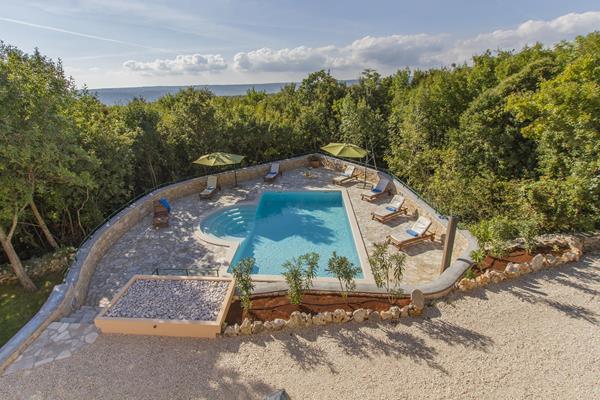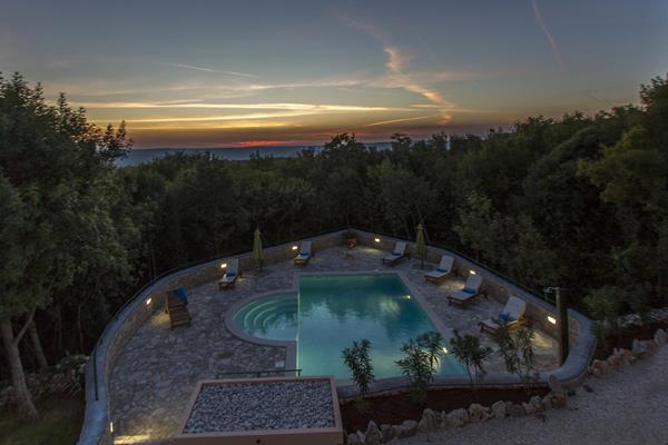 uz veći bazen nalazi se dodatno ognjište sa stolom i stolicama na raspolaganju svim gostima