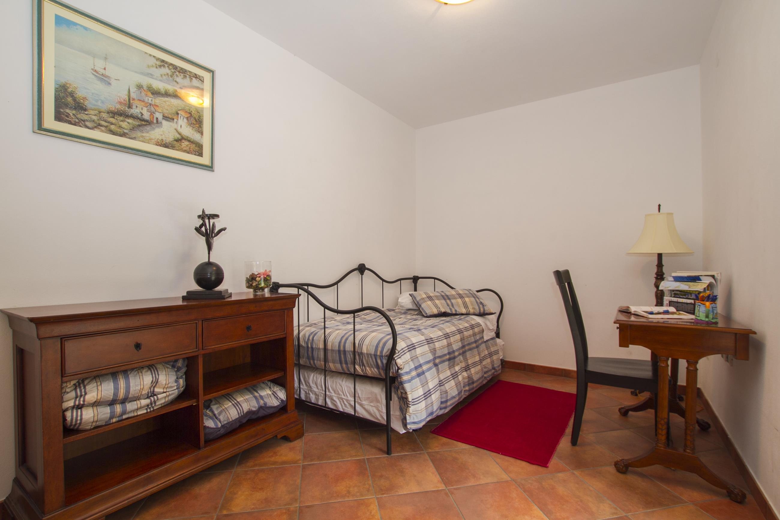 spavaća soba s jednim krevetom i izvlačnim pomoćnim krevetom, izlaz na terasu