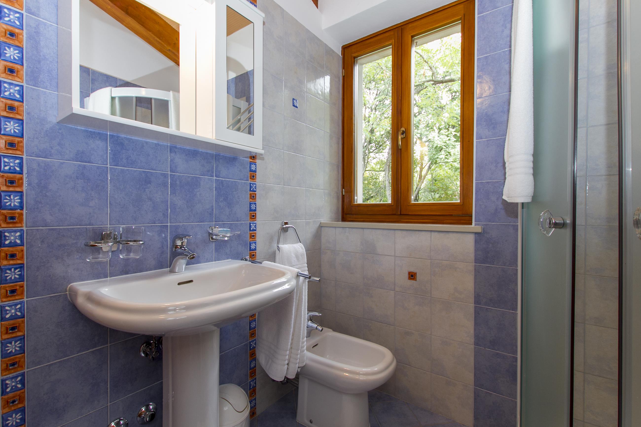 spavaća soba s dva odvojena kreveta (90 x 200 cm), vlastita kupaonica s tušem, izlaz na balkon s pogledom na more, klima
