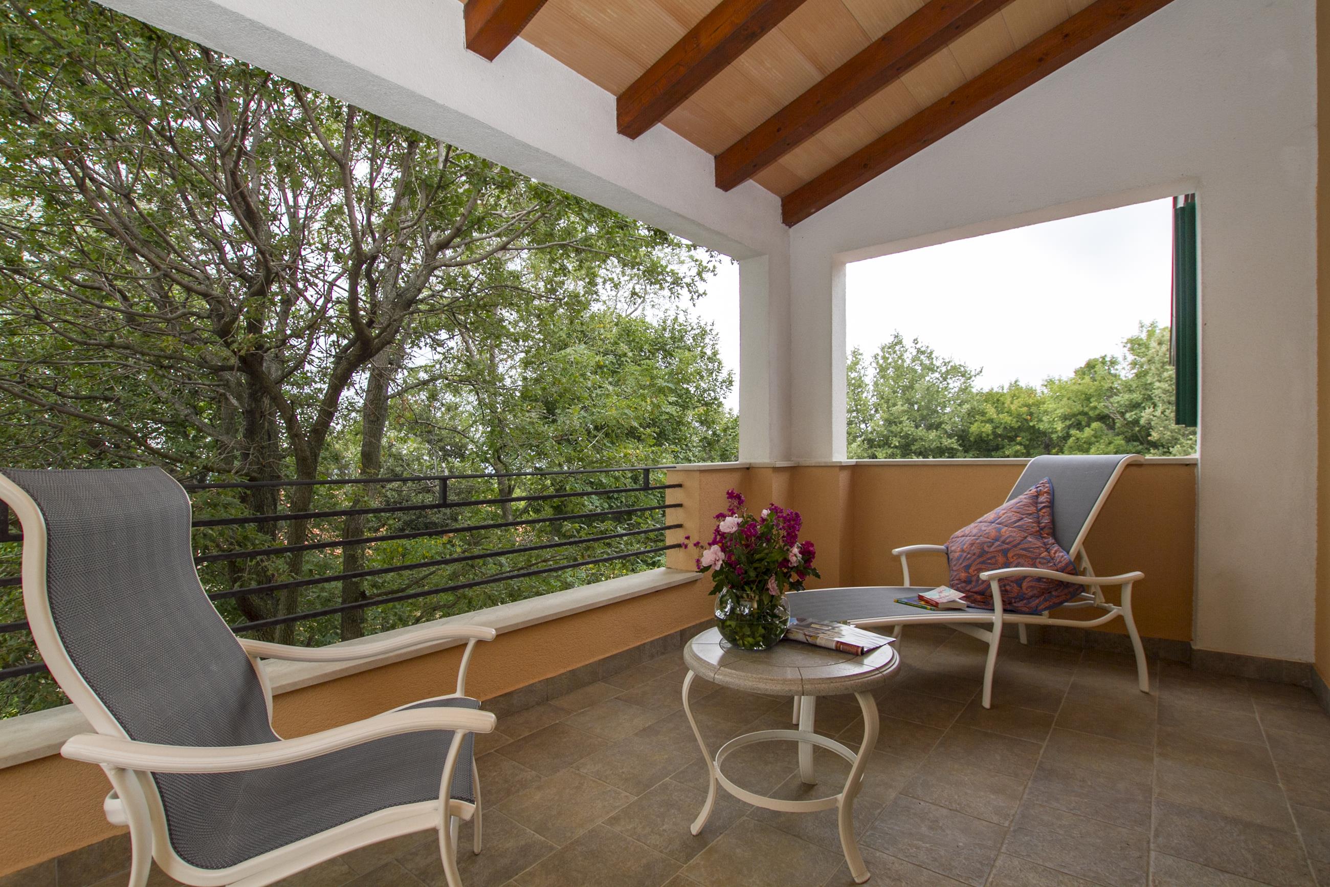 privatna terasa sa stolom, stolicama i roštiljem