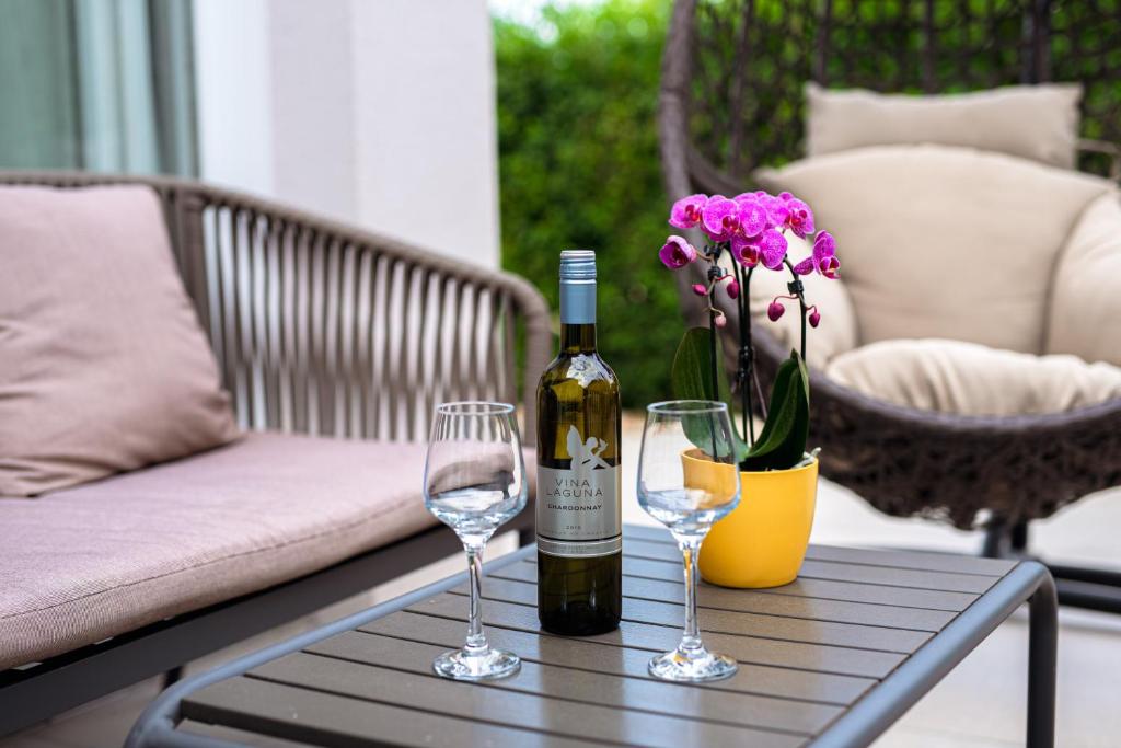 Ispred vile nalaze se dva privatna parkirna mjesta, dok garaža — iako nije namijenjena za parkiranje — sadrži perilicu rublja te može poslužiti za spremanje bicikala. Gostima su također na raspolaganju dva dječja krevetića (na zahtjev), glačalo i daska za glačanje, usisavač, Wi-Fi internet i plinski roštilj.