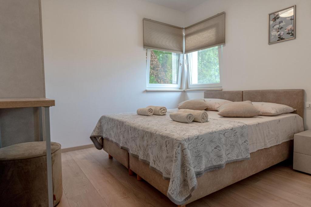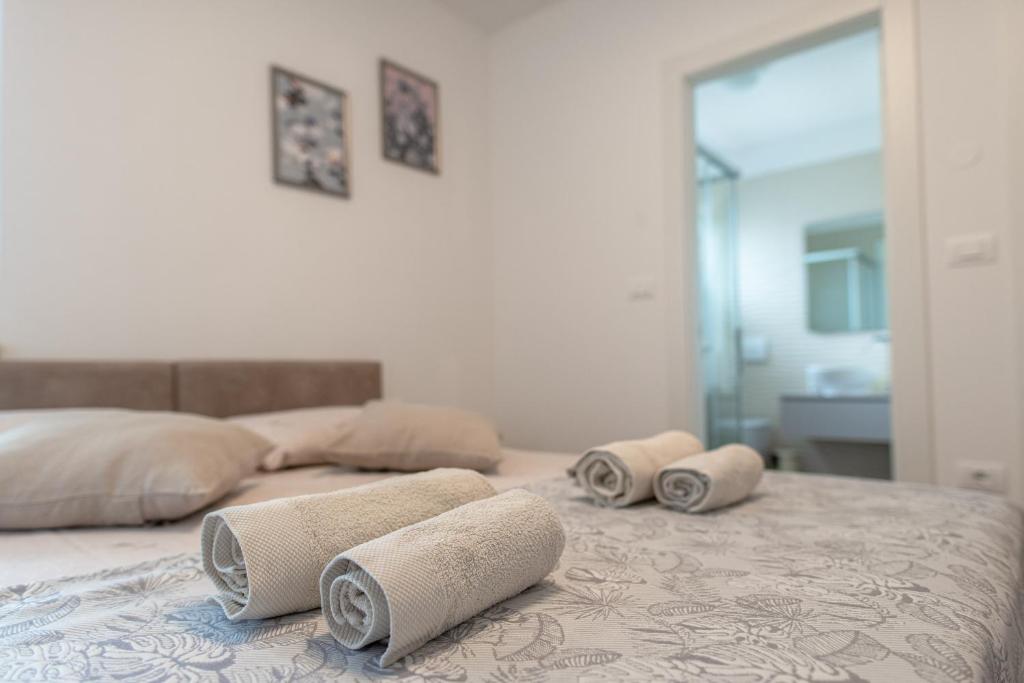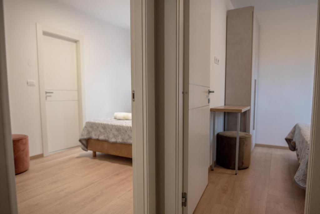 2 dvokrevetne spavaće sobe s odvojenim krevetima (80 x 200 cm) koji su spojeni u bračni krevet, a po želji se mogu razdvojiti; vlastite kupaonice, klima uređaj