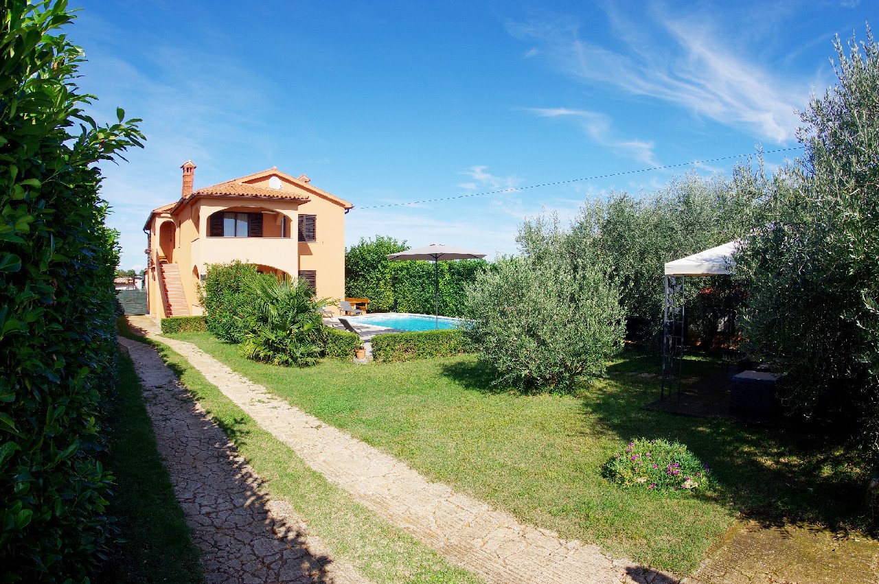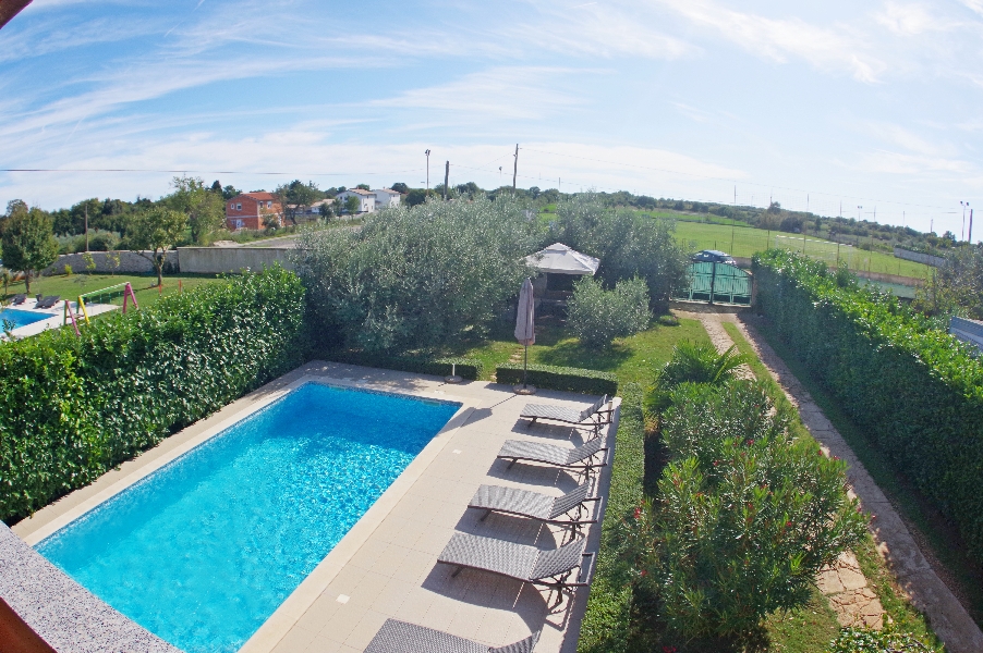 Apartman s 3 spavaće sobe s privatnim bazenom (8m x 4m) smješten na zelenom mjestu u naselju Šišan 9 km od povijesnog centra Pule. Kuća je okružena (400m2) ograđenim vrtom sa travnjakom, u neposrednoj blizini polja i mediteranskog raslinja. Iza kuće vlasnik ima poljoprivredno zemljište sa svježim voćem i povrćem. Stan se nalazi na prvom katu. Prekrasne plaže udaljene su samo 3 km od kuće. Smješteni u mirnom mjestu Šišan, bit ćete daleko od gradske vreve.