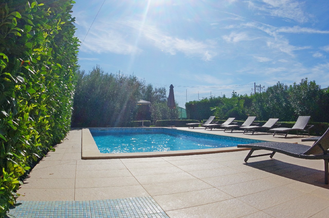 Ograđena okućnica 400m2: Bazen (8m x 4m) sa ležaljkama, suncobranima, privatni parking, vanjski tuš, roštilj, vanjska natkrivena blagovaonica.