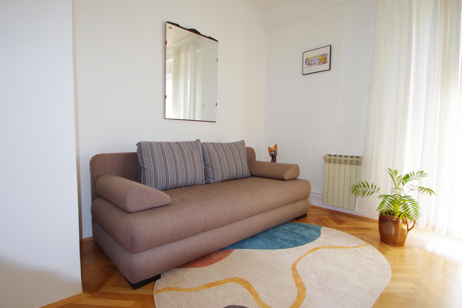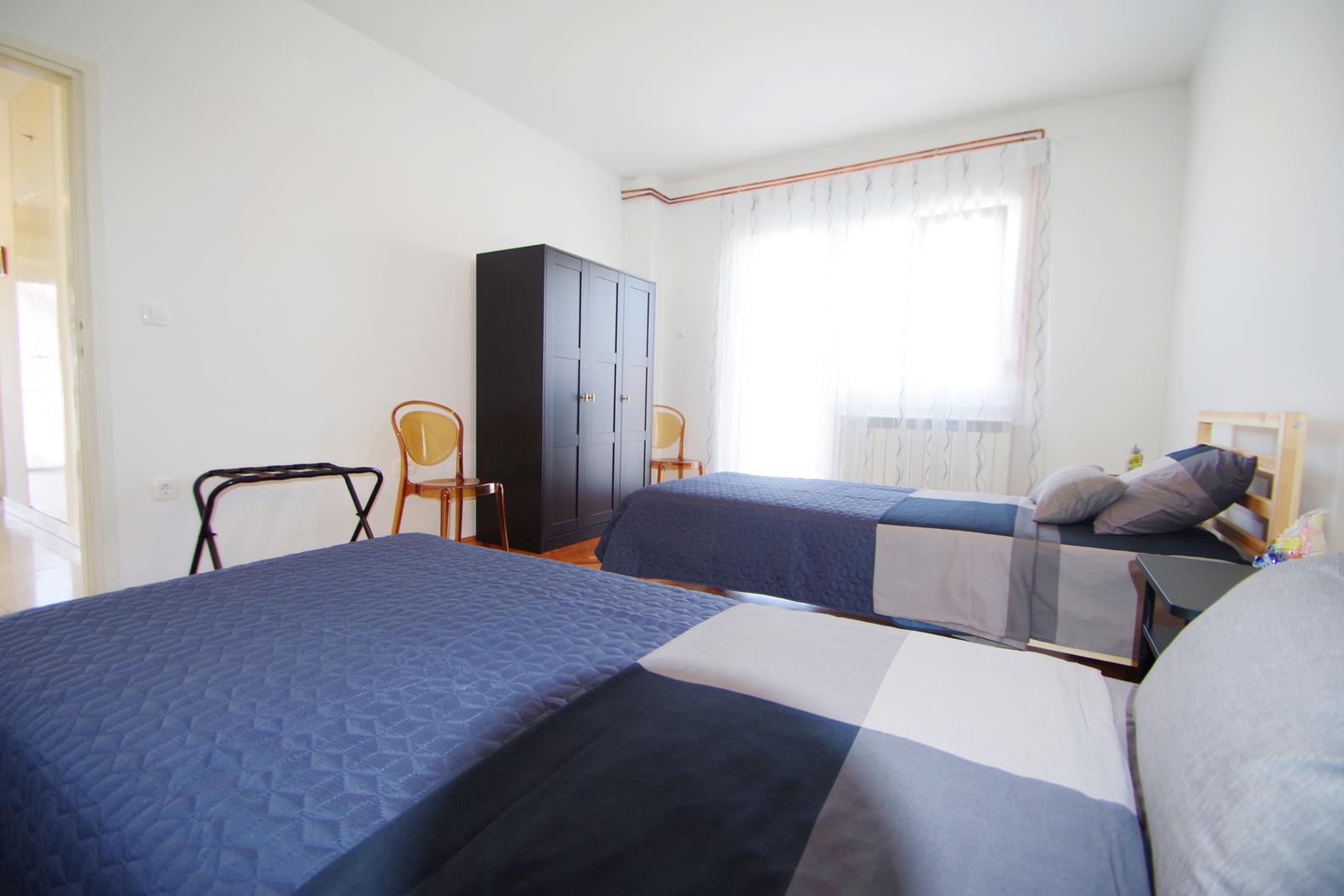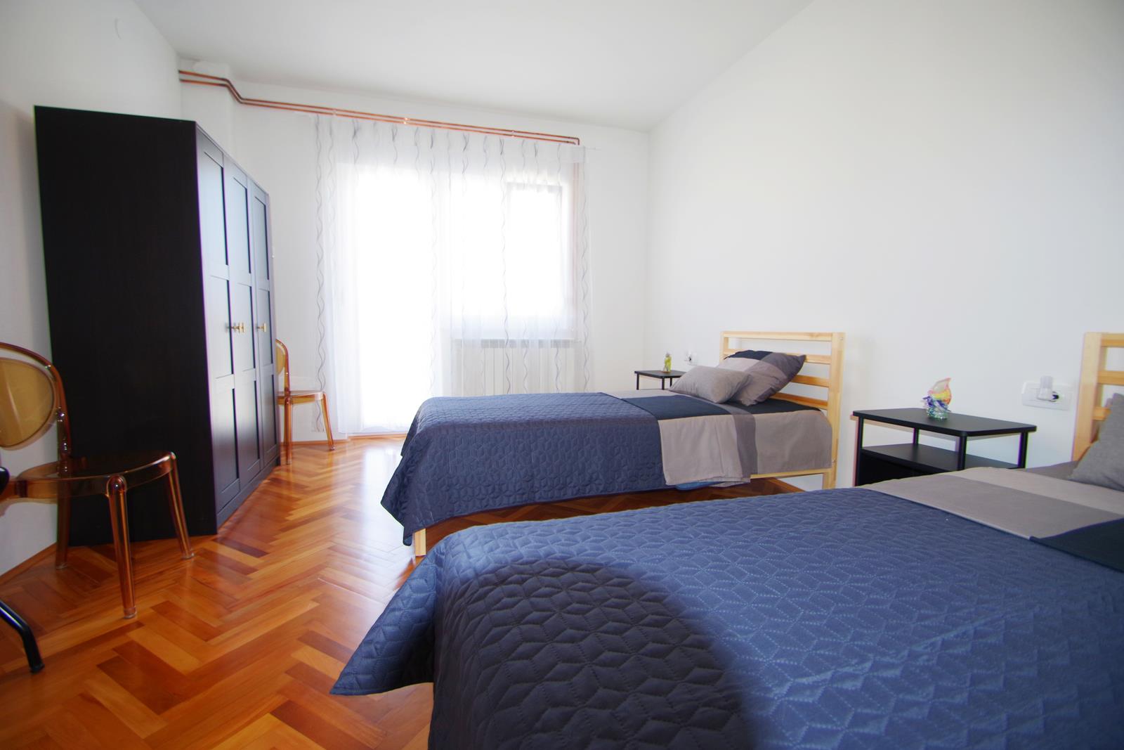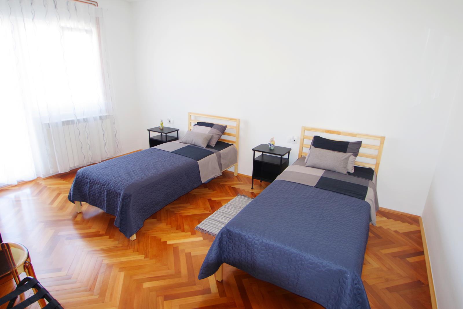 2 spavaće sobe (prva s bračnim krevetom, druga s 2 odvojena kreveta, s izlazom na mali balkon i mogućnošću spajanja kreveta)