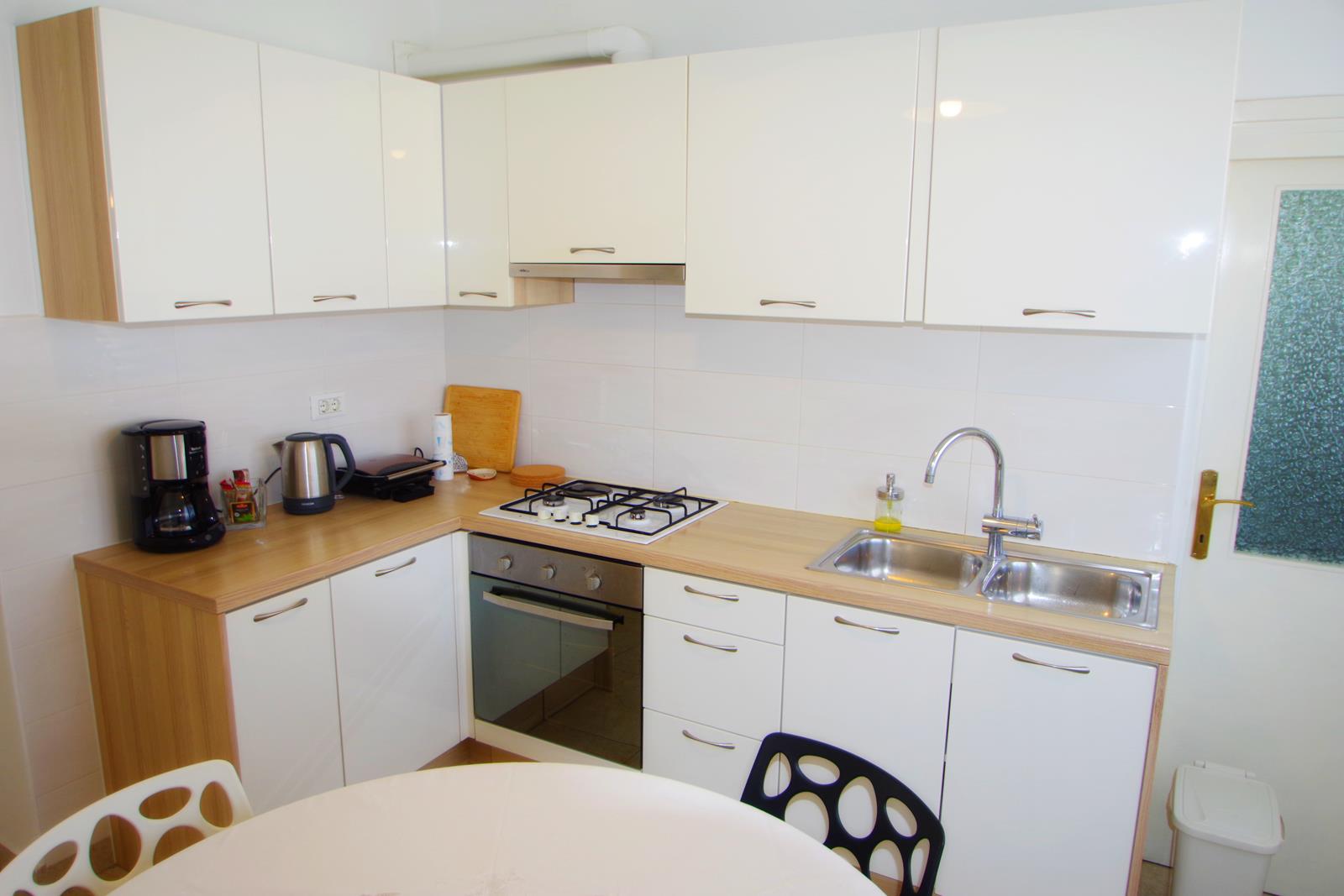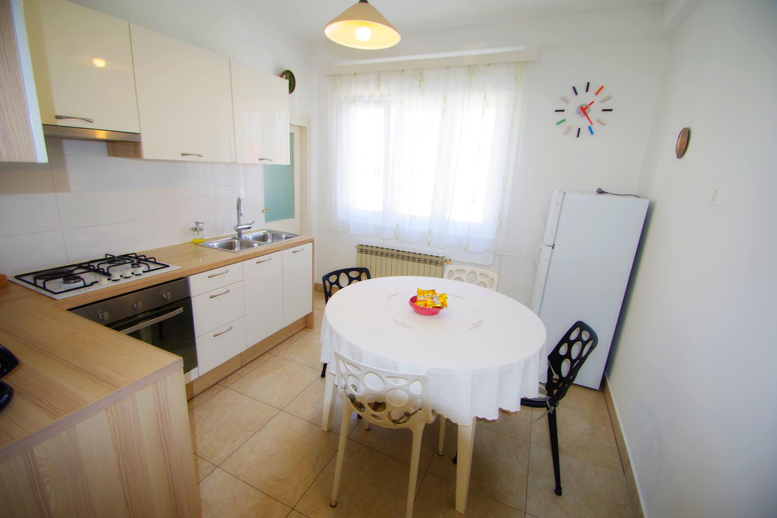 Kuhinja (4 kuhala – 3 na plin i 1 električno), pećnica, aparat za kavu, hladnjak s ledenicom, kuhalo za vodu, napa, toster, stol za objedovanje