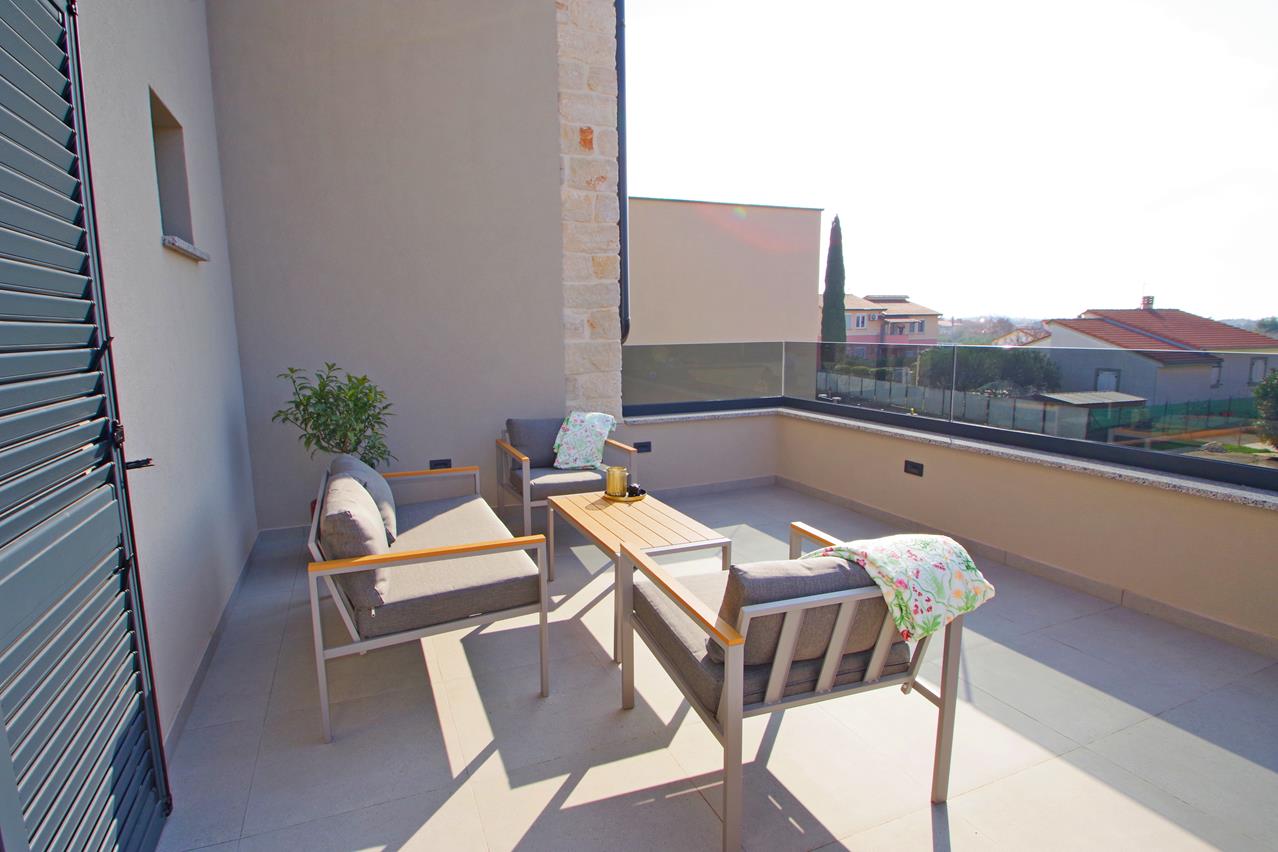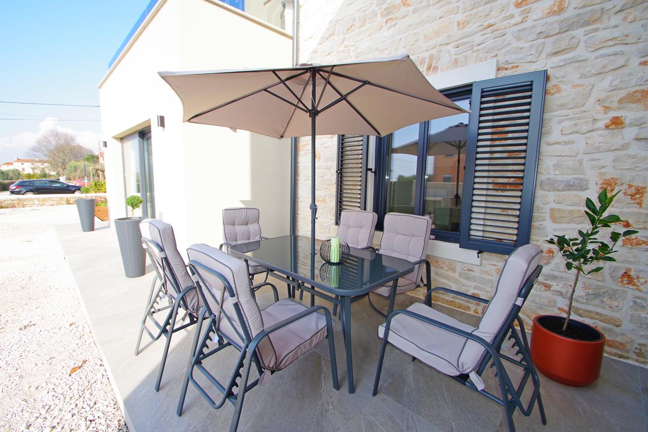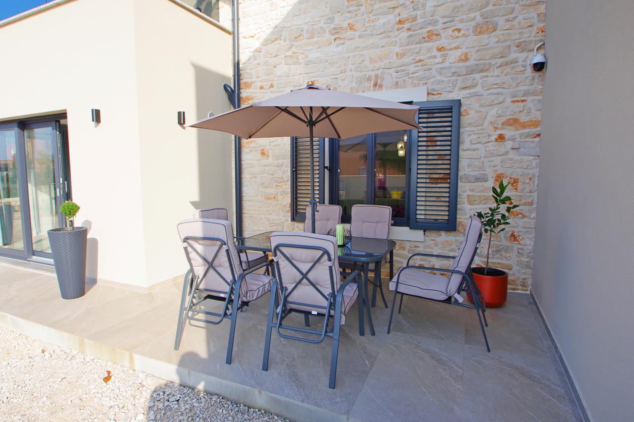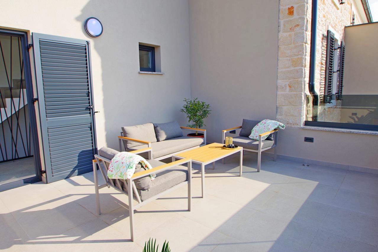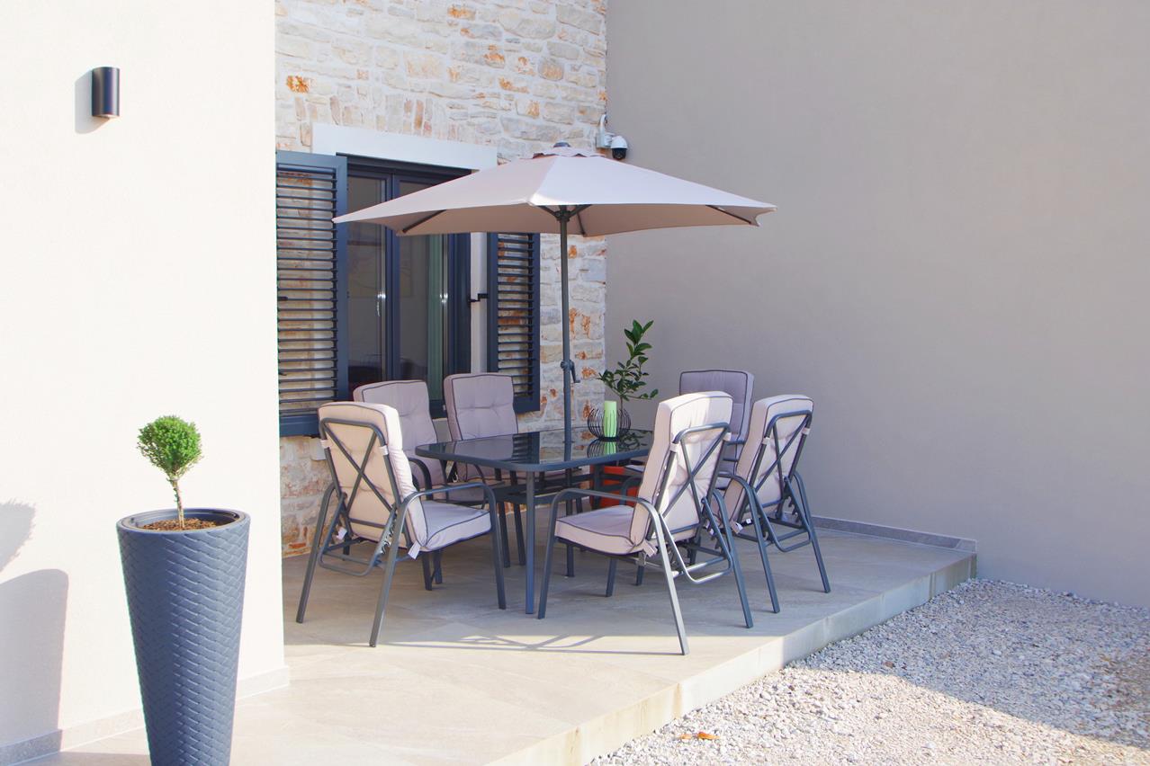 - Terasa s vanjskim namještajem za sjedenje, suncobranima i plinskim roštiljem